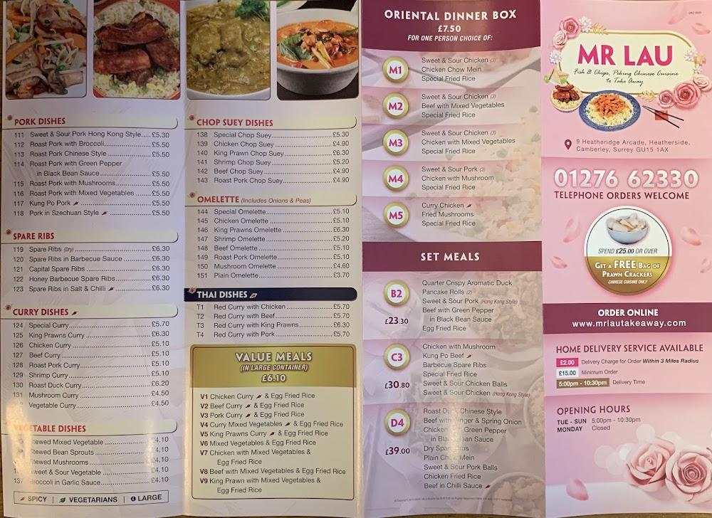 Located at 9 Heather Ridge Arcade in Camberley, Mr Lau Fish & Chips Peking Chinese Cuisine stands out as a prime choice for locals who crave a quick bite without sacrificing quality. The venue is easily accessible, making it an ideal stop for families and busy professionals alike. It boasts wheelchair-accessible seating, ensuring everyone can enjoy a meal. The spacious takeaway area welcomes customers with an inviting aroma of freshly cooked dishes that lure you in. Free street parking around the area gives diners hassle-free access, making it convenient to pop in for a quick meal or spend some time enjoying the laid-back atmosphere. Open every day of the week, the restaurant is a reliable choice for dinner, and its ability to accept reservations adds to its charm, making it popular among those seeking to enjoy a meal with friends or family.